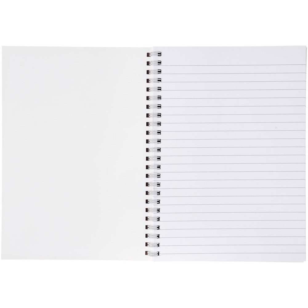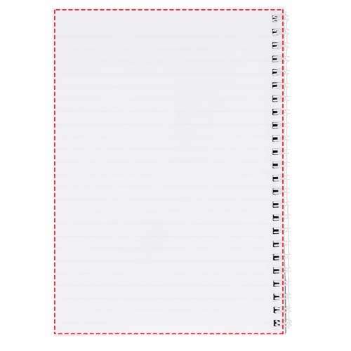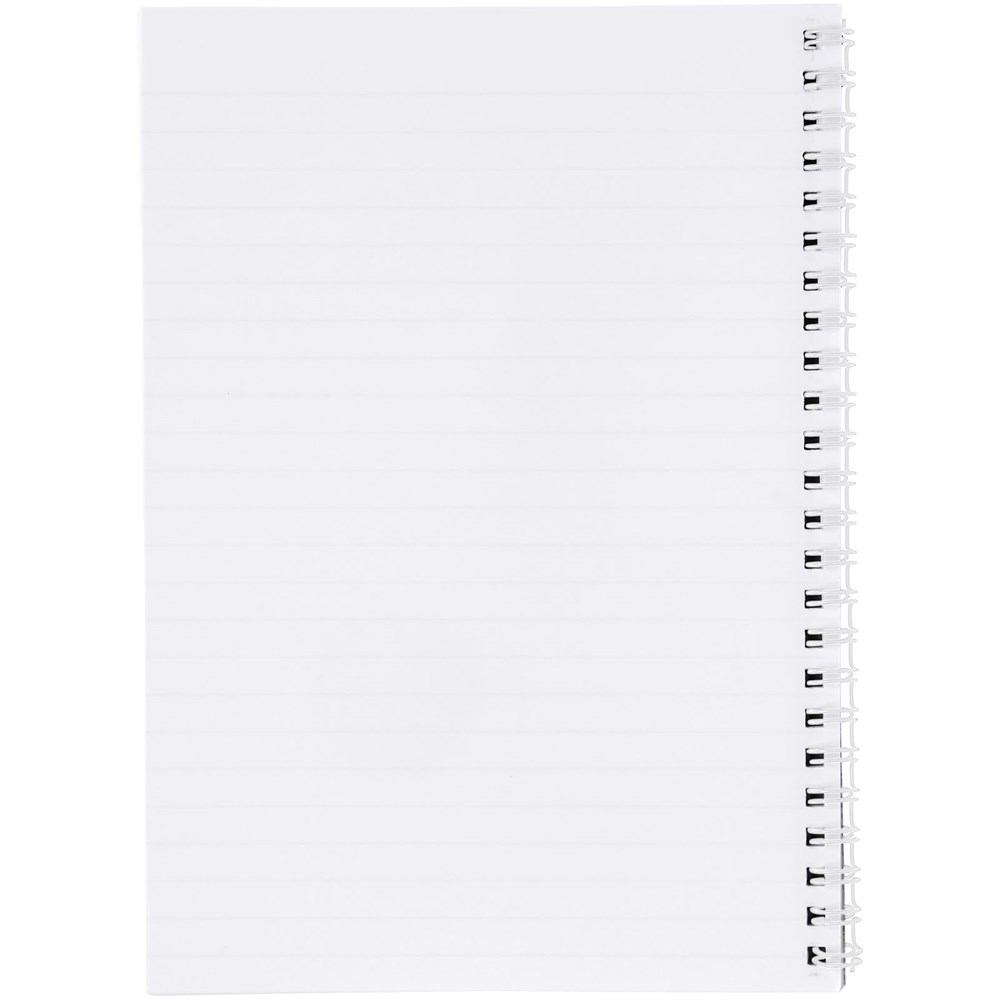 Desk-Mate® A4 spiraalnotitieboek. Inclusief 50 vel blanco papier (80 g/m2) en voorkant (450 g/m2). De omslag is scheur- en watervast. Je kunt de pagina's van dit veelzijdige notitieboek aanpassen met elk gewenst ontwerp - dus of je nu gelinieerd papier, vierkanten of stippen wilt - alles is mogelijk!