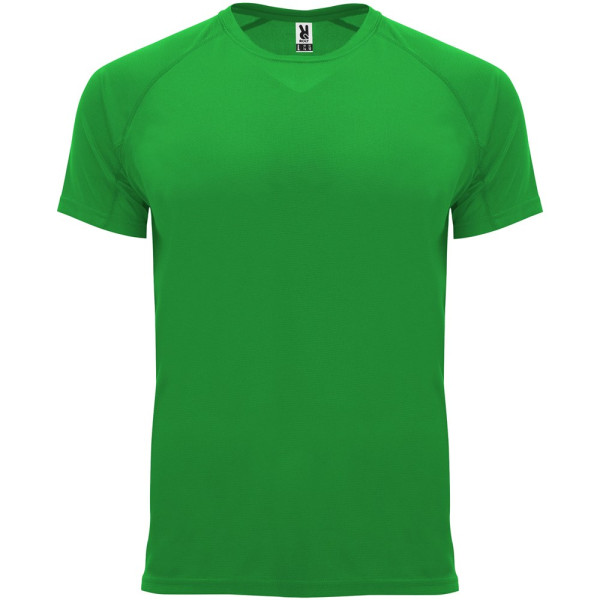 Technisch raglanshirt met korte mouwen. Ronde hals met bijpassende bedekte naden. Onderste mouwpanelen. Bijpassende overlock in het armsgat en mouwpaneel. CONTROL-DRY-stof. Verwijderbaar etiket. Technische stof. Het model is 180 cm en draagt maat M.