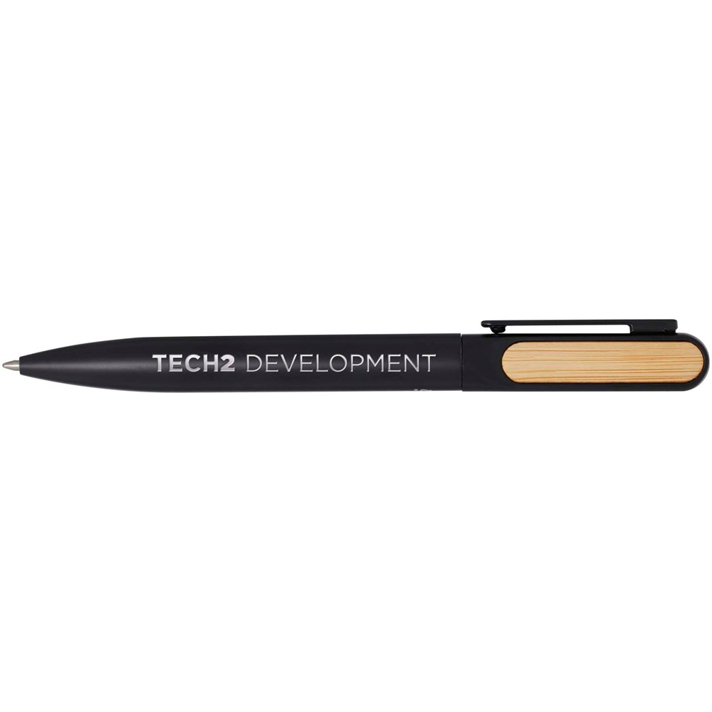 De Blanca balpen heeft een bovenste houder van gerecycled plastic met een gekleurde spraycoating en bamboe accessoires aan beide zijden. Het onderste deel van de houder is gemaakt van gerecycled aluminium met een gekleurde spraycoating. Inktkleur: zwart. Schrijflengte: 400 meter. Stiftmaat: 1,0 mm.