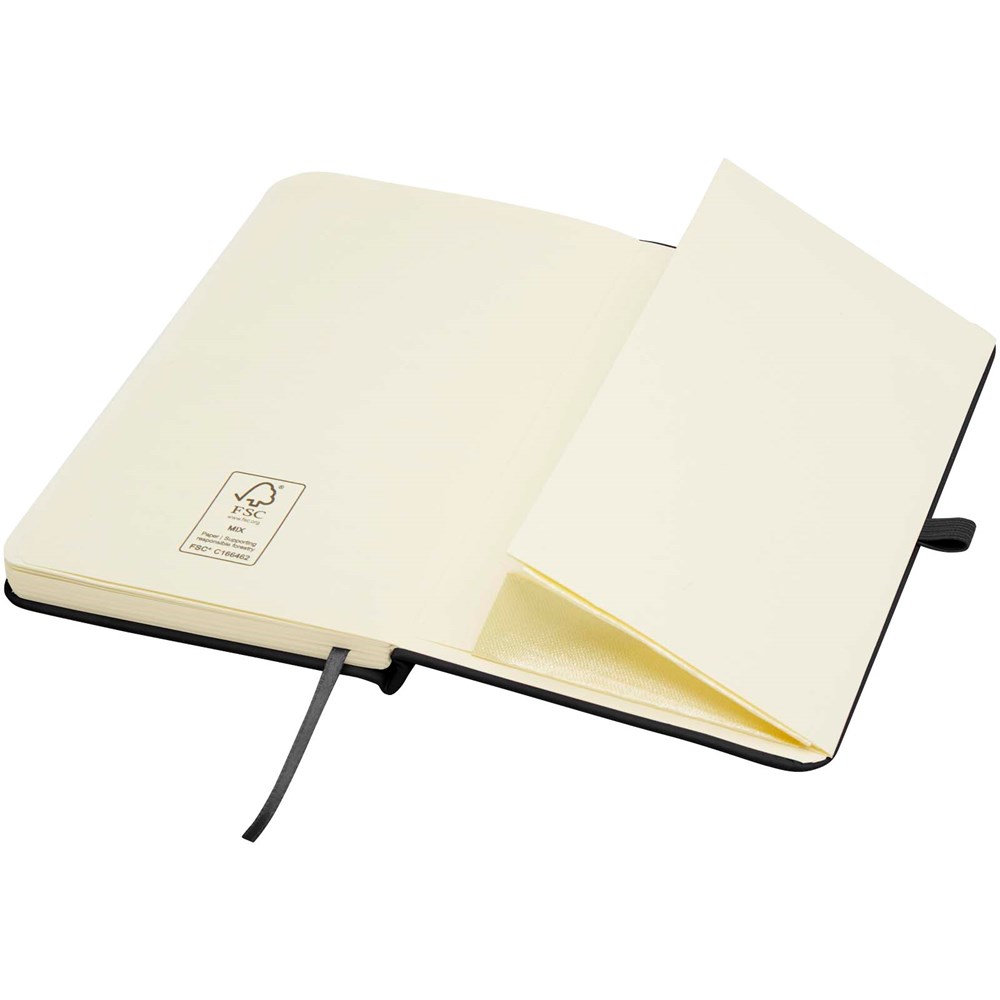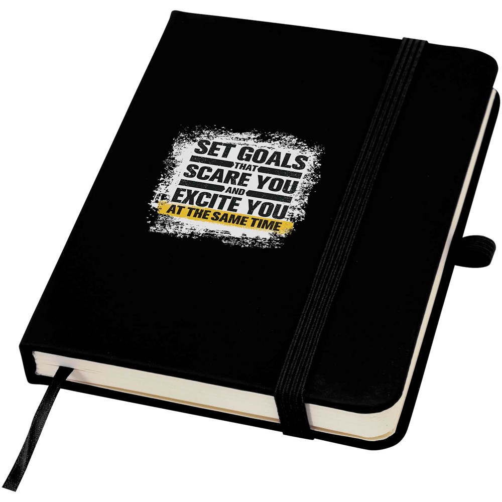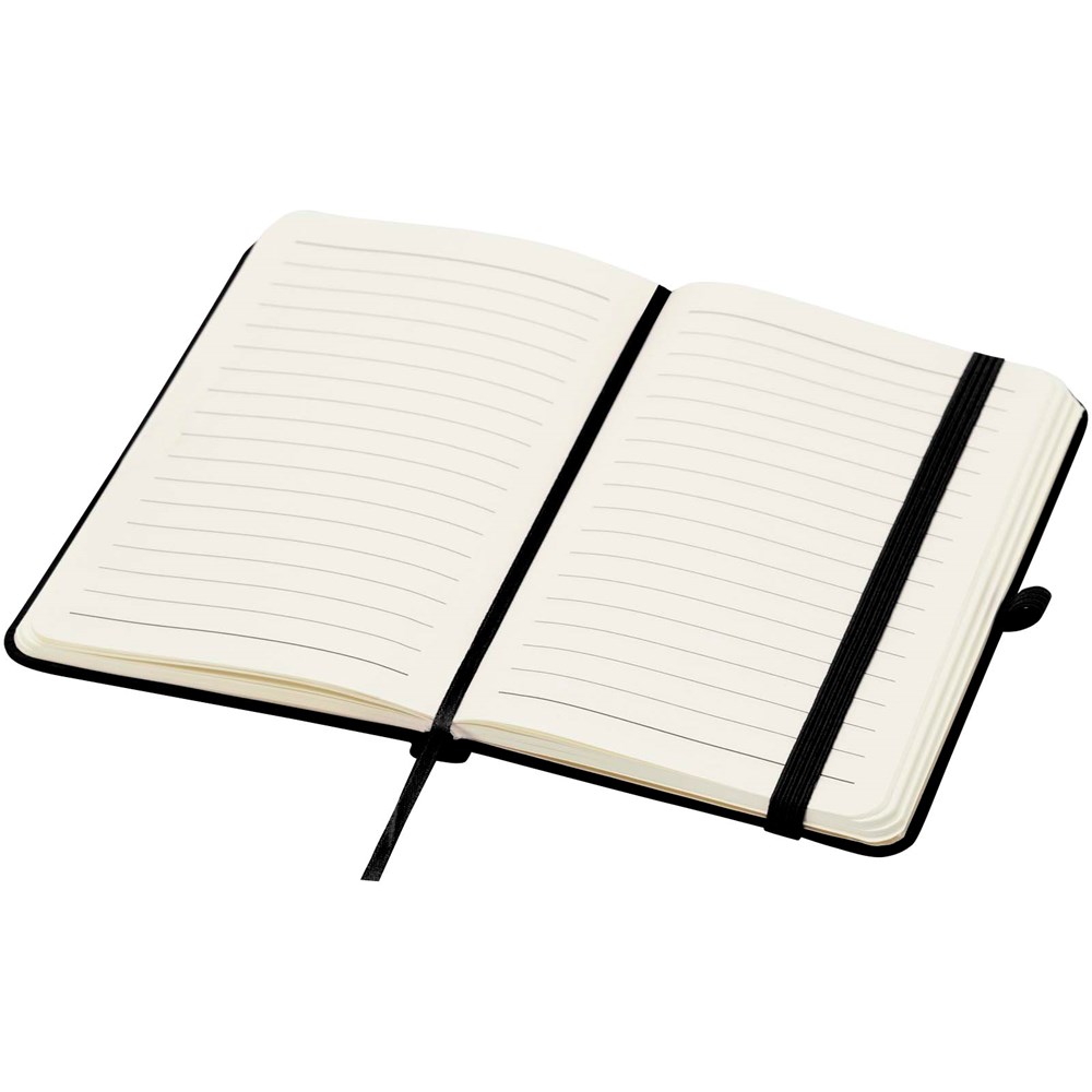 Het Spectrum Plus A6 notitieboek met harde kaft en afgeronde hoeken is niet alleen onmisbaar op kantoor, maar ook een geweldige kans om je merk te promoten. Het kartonnen notitieboek heeft een zacht aanvoelende kaft en 80 gelinieerde crèmekleurige vellen van 70 g/m², ideaal voor het opschrijven van snelle ideeën of lange notities. Het notitieboek heeft een pennenlus, elastische sluiting, lintmarkering en accordeonvak.