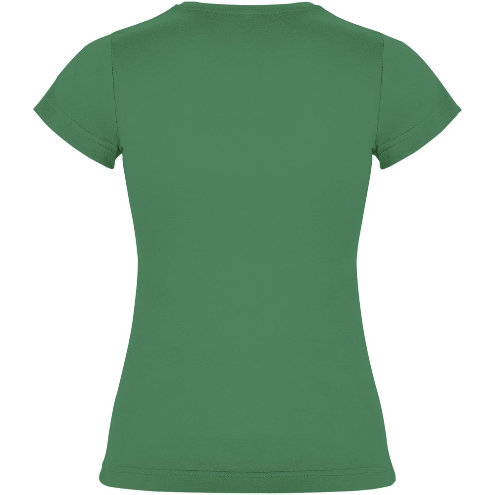 Getailleerd T-shirt met korte mouwen. 1x1 dubbellaags geribde ronde hals en bedekte naden van schouder tot schouder. Zijnaden. T-shirt verkrijgbaar in 21 kleuren. Verwijderbaar etiket. Het model is 168 cm en draagt maat S.