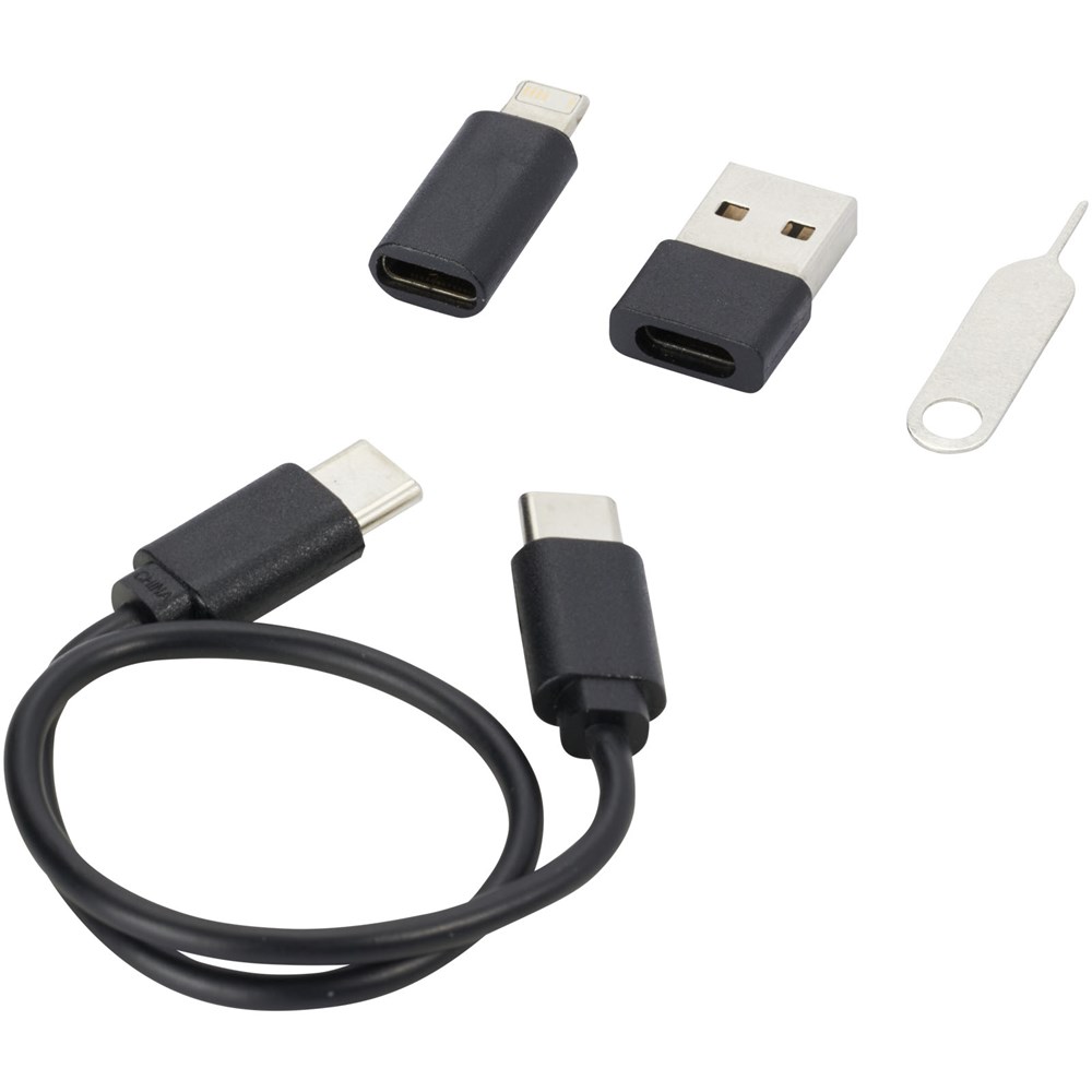 Savvy modulaire oplaadkabel van gerecycled plastic met telefoonhouder