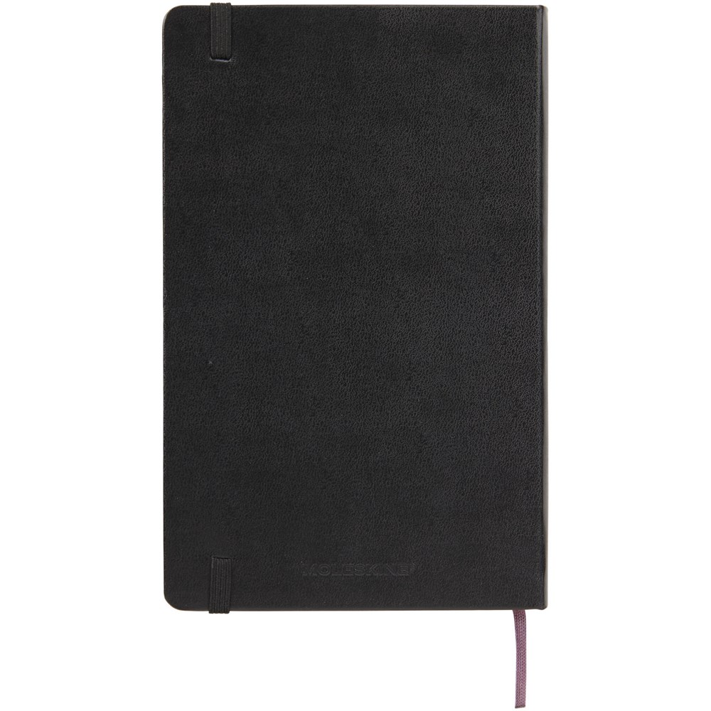 De Moleskine Classic large (13 x 21 cm) is voorzien van een harde omslag van gebonden karton met afgeronde hoeken, zuurvrij papier, een bladwijzer en een elastische sluiting. De eerste pagina biedt ruimte voor persoonsgegevens en het noteren van een beloning die de eerlijke vinder in geval van verlies ontvangt. Aan de achteromslag bevindt zich aan uitbreidbaar binnenvak met daarin de geschiedenis van Moleskine. Dit vak kan worden gebruikt voor losse papieren en notities. Bevat 240 ivoorkleurige gelinieerde pagina's. Verkrijgbaar in diverse stijlvolle, levendige kleuren.
