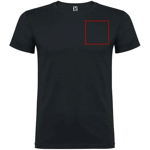 T-shirt met korte mouwen en dubbellaagse ronde hals van elastaan, gemaakt van buisvormige stof voor volwassenen. Versterkte bedekte naden in de kraag. Verwijderbaar etiket. Het model is 190 cm en draagt maat L.