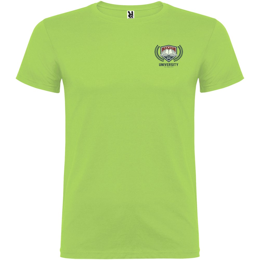 T-shirt met korte mouwen en dubbellaagse ronde hals van elastaan, gemaakt van buisvormige stof voor volwassenen. Versterkte bedekte naden in de kraag. Verwijderbaar etiket. Het model is 190 cm en draagt maat L.