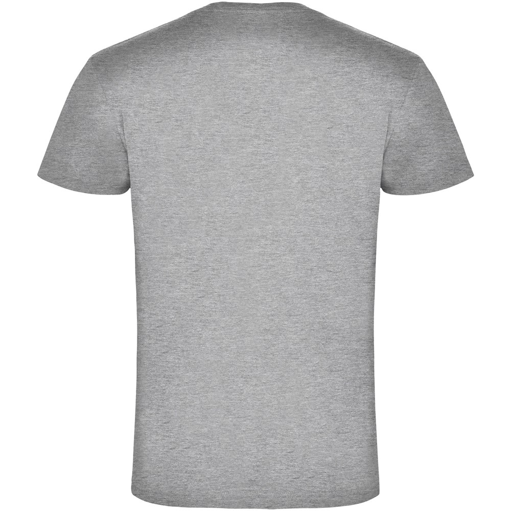 Buisvormig T-shirt met korte mouwen en tweelaags V-hals. Versterkte bedekte naden in kraag en schouders. Verwijderbaar etiket. Het model is 190 cm en draagt maat L.