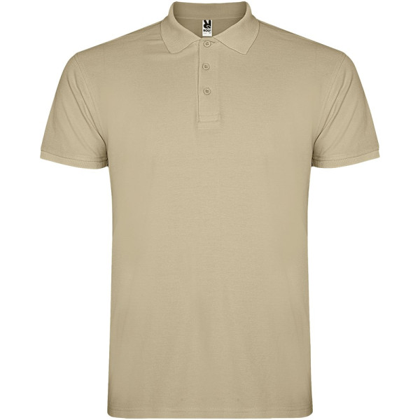 Poloshirt met korte mouwen voor heren. Versterkte bedekte naden in de binnenkant van de kraag. 1x1 geribde manchetten en kraag. Zijnaden. Knoopsluiting met drie knopen en zijsplitten. Optionele zak. Verwijderbaar etiket. Het model is 185 cm en draagt maat L.