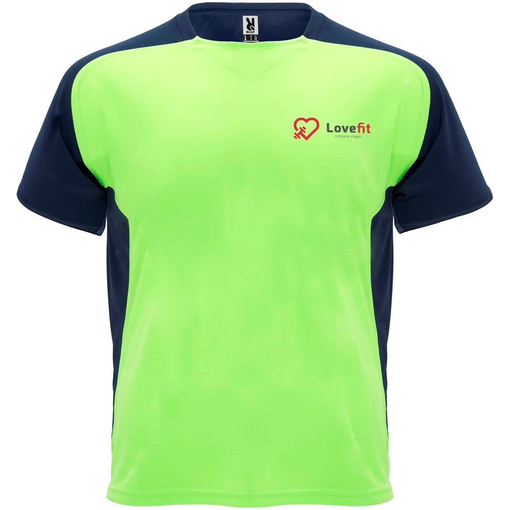 Technische en ademende stof. Ronde hals met bijpassende bedekte naden. Raglanmouwen en contrasterende zijpanelen. Verwijderbaar label.