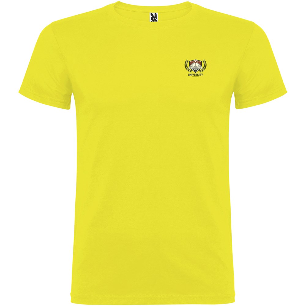 T-shirt met korte mouwen en dubbellaagse ronde hals van elastaan, gemaakt van met zijnaden. Versterkte bedekte naden in de kraag. Verwijderbaar etiket. Het model is 120 cm en draagt maat 5/6.