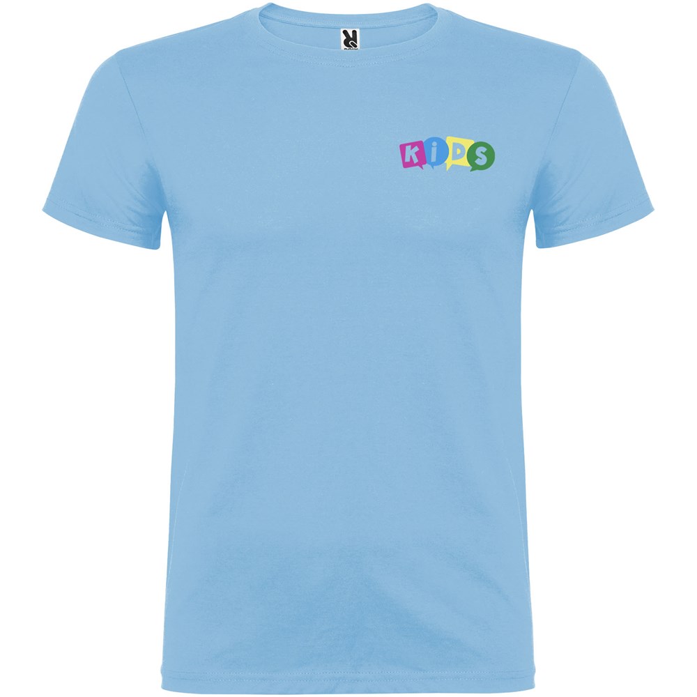 T-shirt met korte mouwen en dubbellaagse ronde hals van elastaan, gemaakt van met zijnaden. Versterkte bedekte naden in de kraag. Verwijderbaar etiket. Het model is 120 cm en draagt maat 5/6.