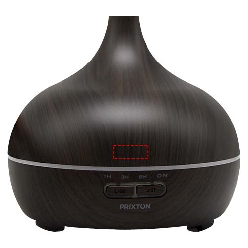 Luchtbevochtiger die aroma 's verspreidt voor thuis, op het werk of voor oefeningen. Timer met opties voor 1, 3 of 6 uur. Led-nachtlampje inbegrepen. Met snoer. Bevochtigt grote ruimtes. AC100-240V DC24V / 0,5A.