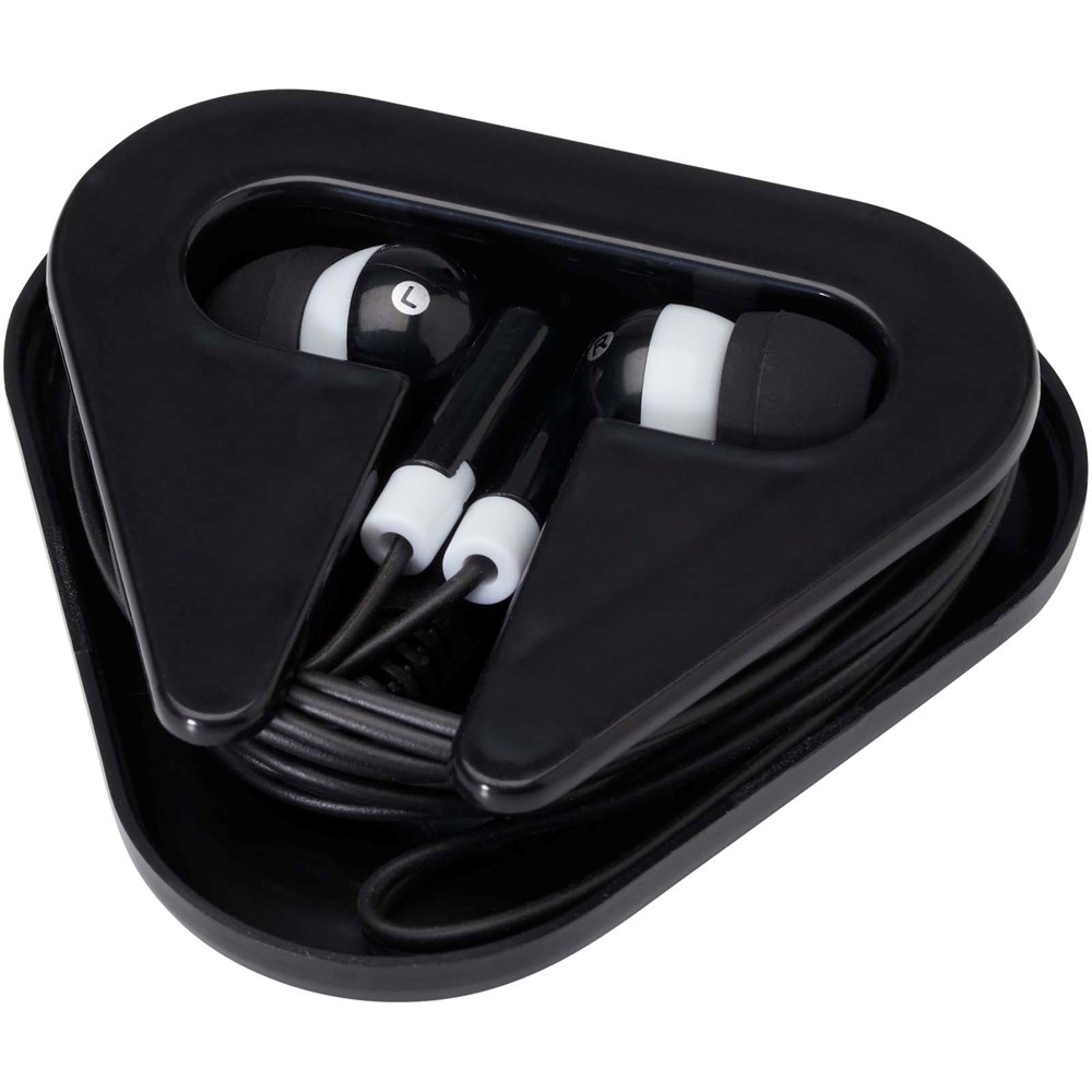 De Rebel oordopjes zijn eenvoudige oordopjes die gebruikt kunnen worden met elk standaard audioapparaat met een 3,5 mm audio-aansluiting. De oordopjes worden geleverd in een driehoekig doosje, met kabelopbergruimte, van gerecycled plastic, waardoor ze goed beschermd zijn tegen beschadigingen van buitenaf.