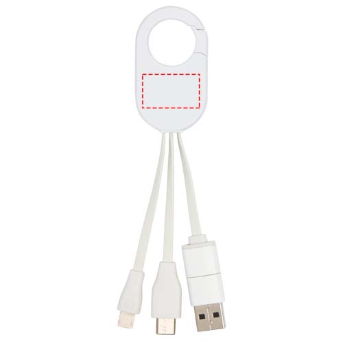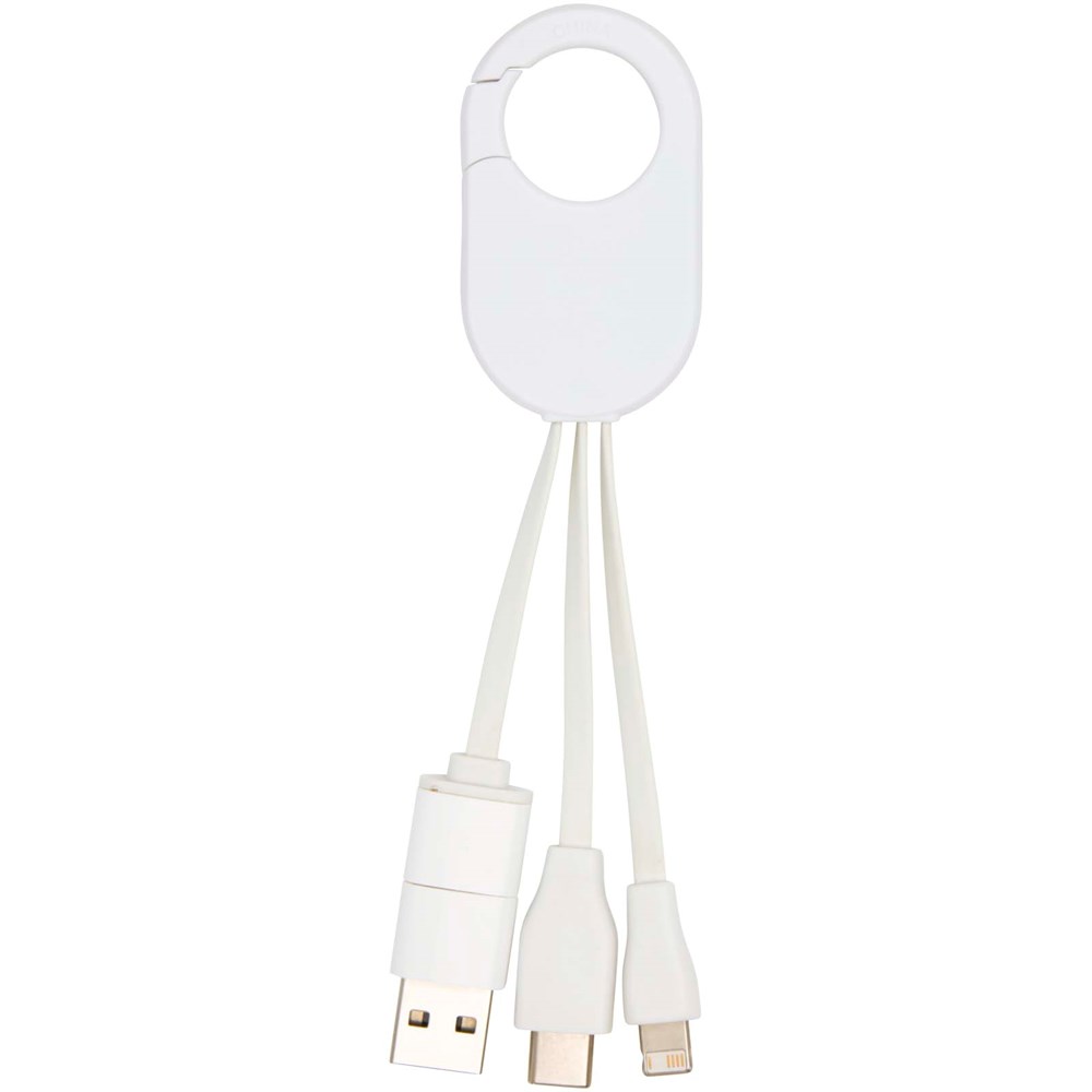 De Troop 4-in-1 oplaadkabel gemaakt van gerecycled plastic, heeft USB-A- en Type-C-ingangsconnectoren gecombineerd met Type-C- en Lightning/Micro USB-combi-uitgangsconnectoren, zodat je de meeste smartphones, camera's, powerbanks en oordopjes kunt opladen. Dankzij de ingebouwde karabijnhaak kun je hem eenvoudig aan een tas of sleutelhanger bevestigen, zodat je altijd en overal je apparaten kunt opladen.