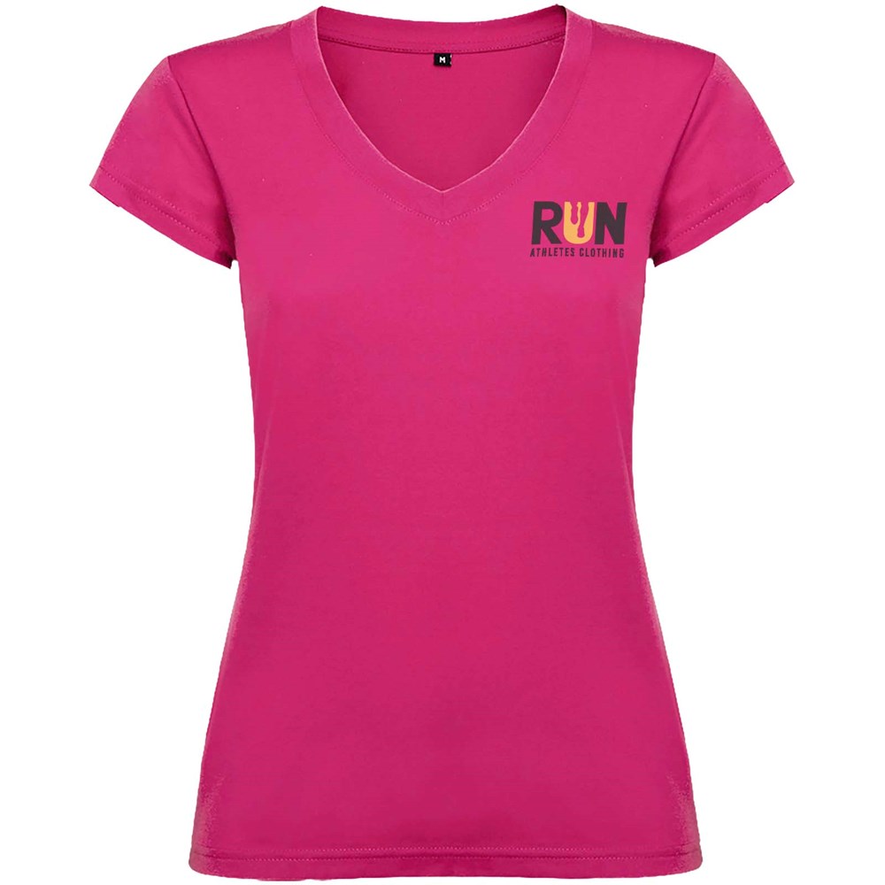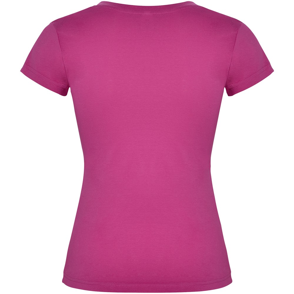 T-shirt met korte mouwen en V-hals voor dames, met 1x1 geribbelde afwerkingen. Slim-fit met zijnaden. Verwijderbaar etiket. Het model is 174 cm en draagt maat S.