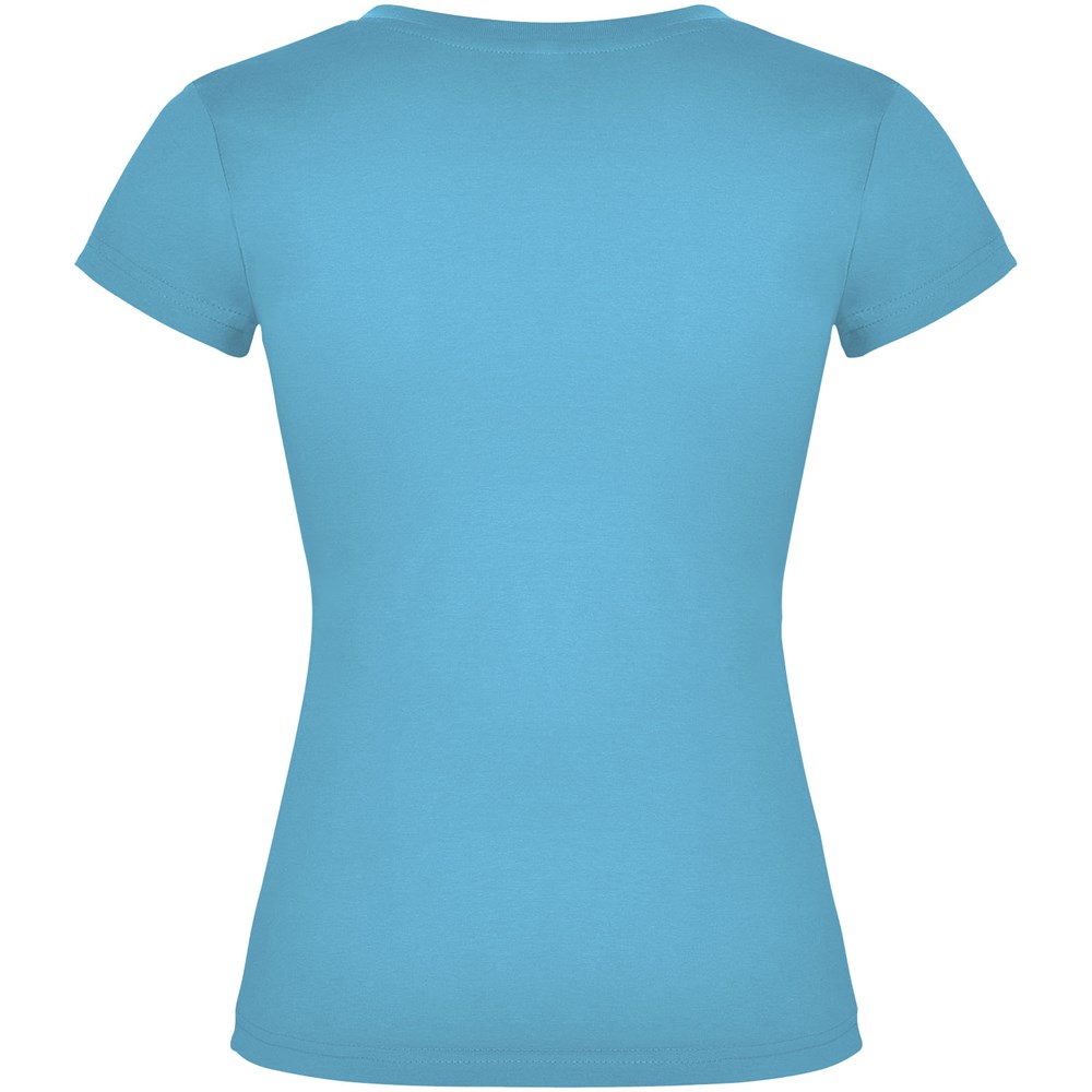T-shirt met korte mouwen en V-hals voor dames, met 1x1 geribbelde afwerkingen. Slim-fit met zijnaden. Verwijderbaar etiket. Het model is 174 cm en draagt maat S.