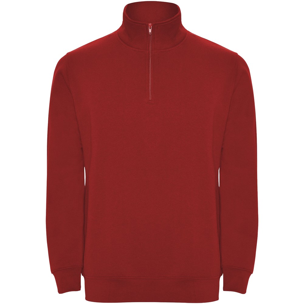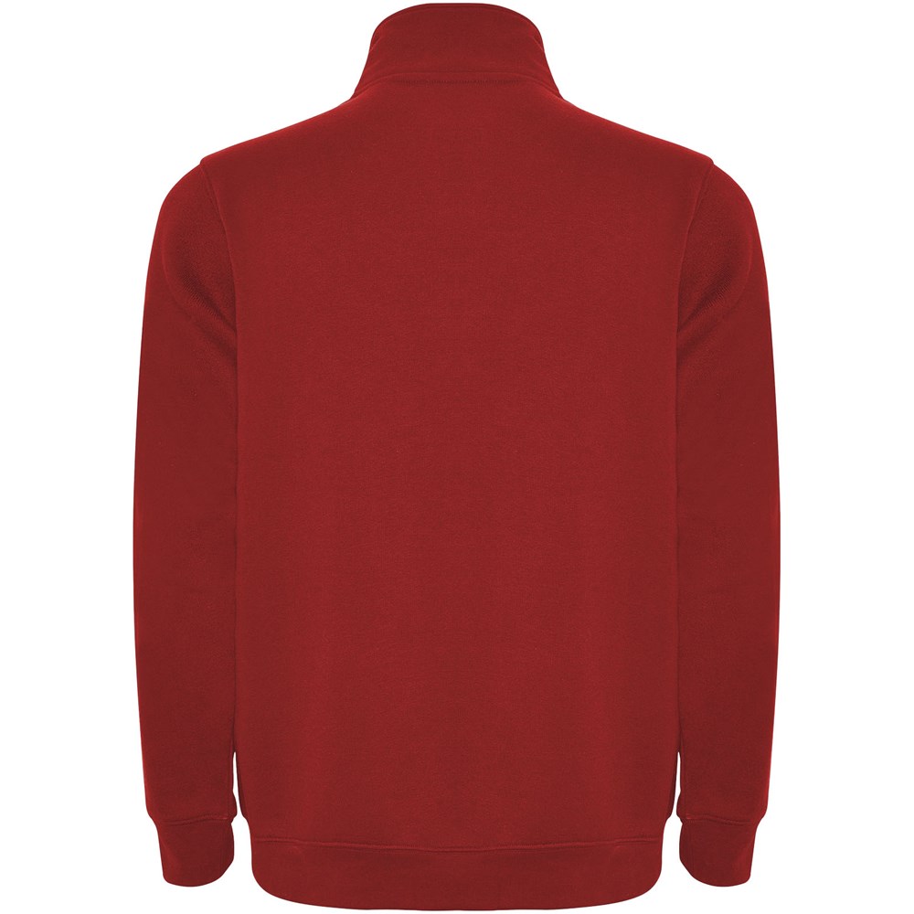 Sweatshirt met halve rits in dezelfde kleur en staande kraag. Binnenkant van de kraag in dezelfde kleur. Versterkte naadafdekkingen aan de binnenzijde van de kraag. Manchetten en tailleband in ribboord 1x1. Het model is 185 cm en draagt maat M.