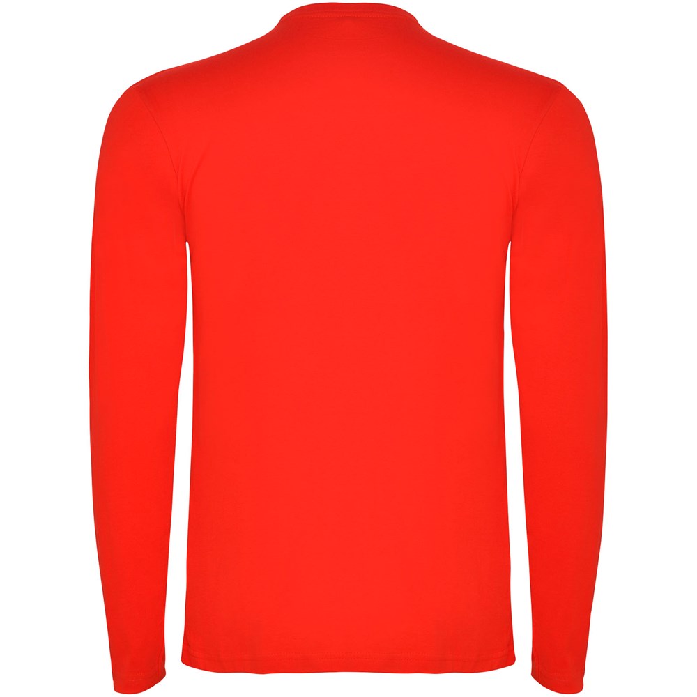 T-shirt met lange mouwen van buisvormige stof en 4-laags ronde hals. Versterkte bedekte naden in kraag en schouders. Geen manchetten. Verwijderbaar etiket. Buisvormig ontwerp in volwassen maten en zijnaden in kindermaten. Het model is 185 cm en draagt maat L.