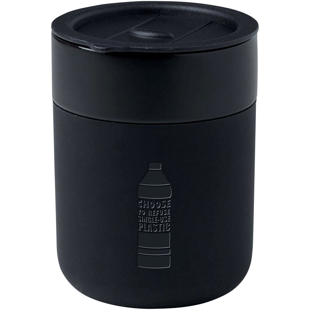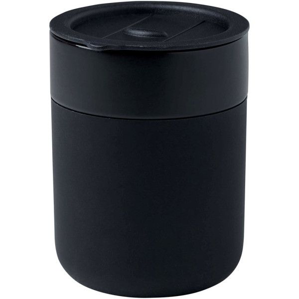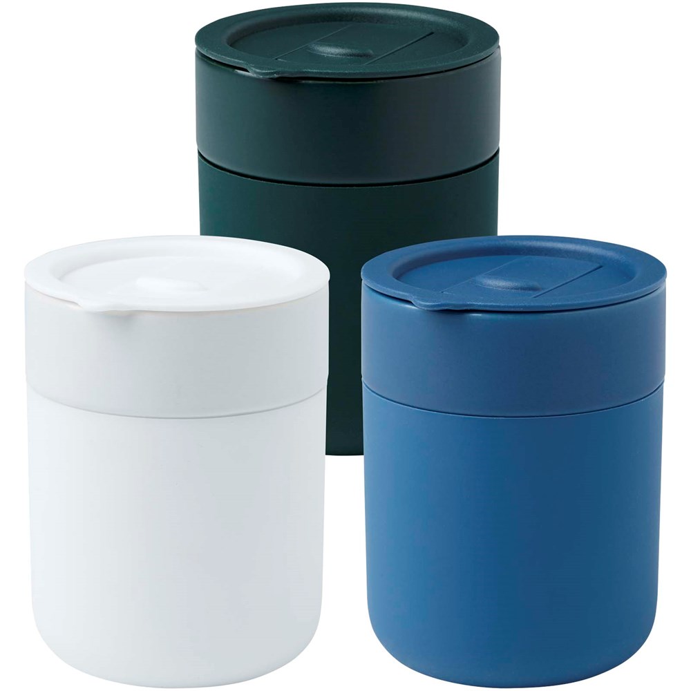 De Java enkelwandige keramische beker heeft een eenvoudig en praktisch ontwerp voor dagelijks gebruik en is voorzien van een siliconen omhulsel voor een comfortabele grip. Morsvrije deksel. Inhoud: 330 ml.