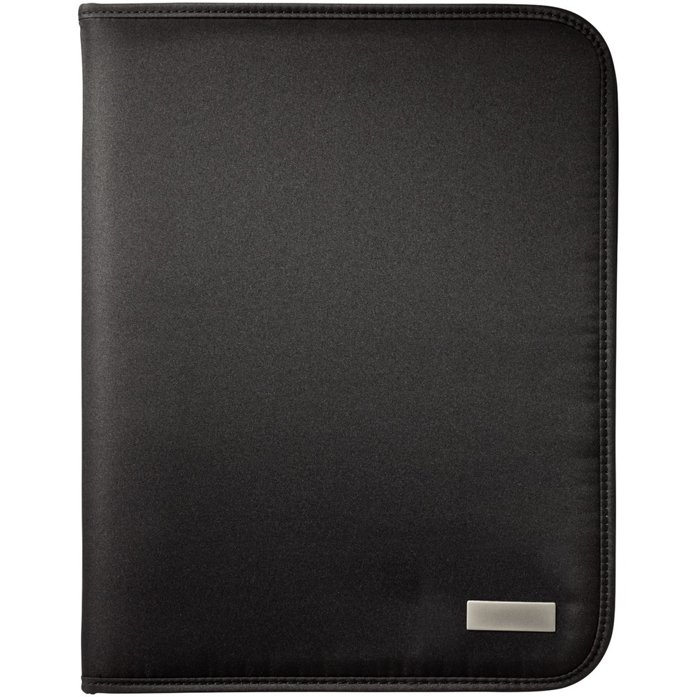 Portfolio met ritssluiting, pennenlus, documentvakken en notitieblok met 20 pagina's gelinieerd papier. Pen en accessoires niet inbegrepen.
