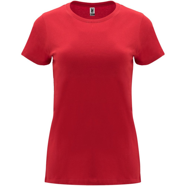 Getailleerd T-shirt met korte mouwen voor dames. 1x1 geribde ronde hals. Versterkte bedekte naden in de kraag. Verwijderbaar etiket.