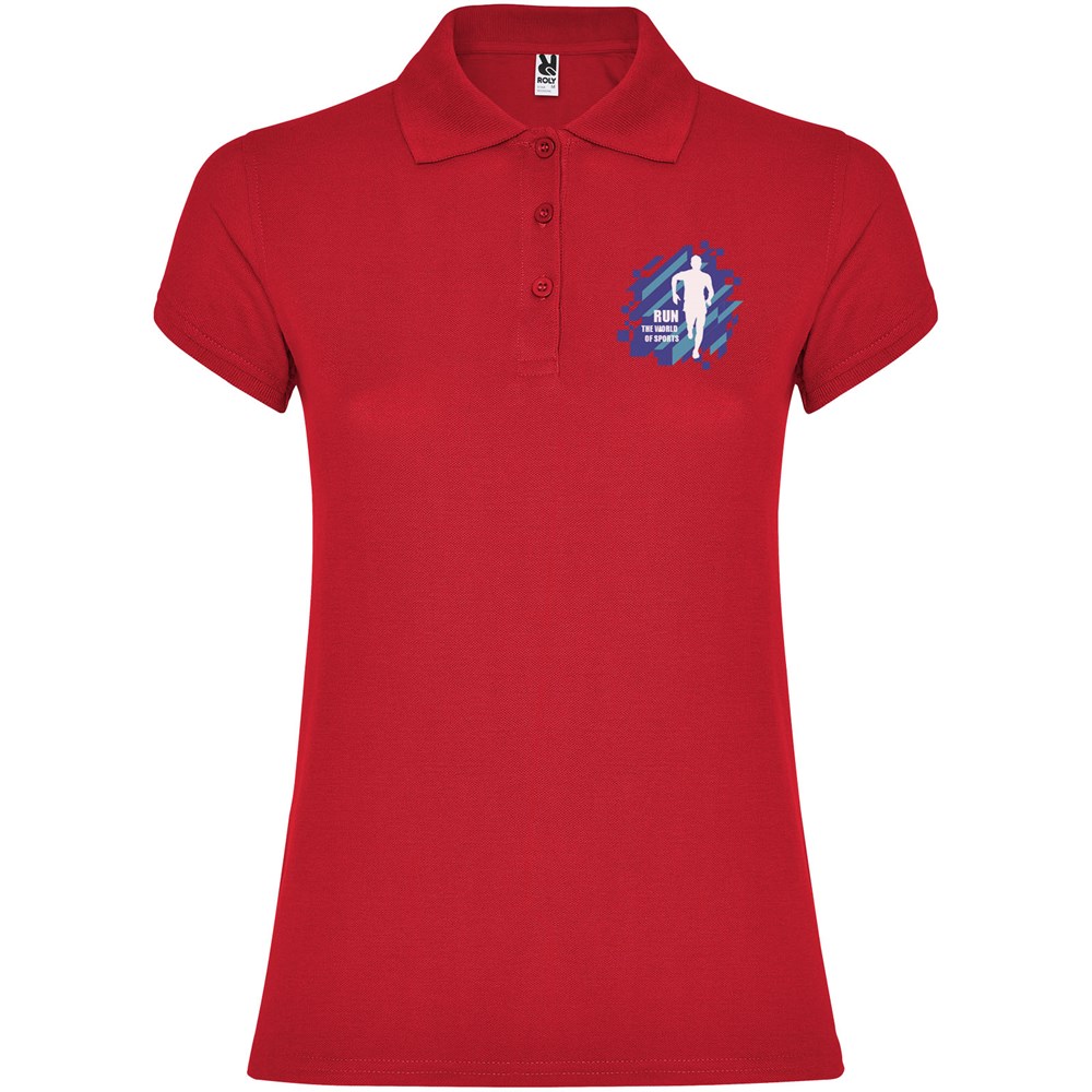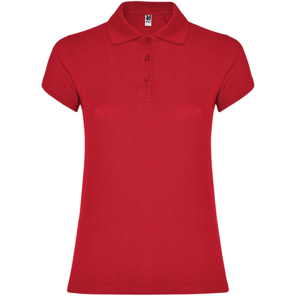 Poloshirt met korte mouwen voor dames. Versterkte bedekte naden in de binnenkant van de kraag. 1x1 geribde kraag en manchetten. Zijnaden en aansluitende snit. Smalle sluiting met drie knopen. Zijsplitten. Verwijderbaar etiket. Het model is 179 cm en draagt maat S.